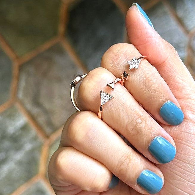 Serve up some serious style with this deliciously fun Rose Gold Pizza Midi Adjustable Ring. Plated in 14k rose gold and topped with sparkling "pepperoni" CZ stones, this quirky ring is a tribute to everyone's favorite food. It's a playful conversation starter that adds a slice of personality to your jewelry game.