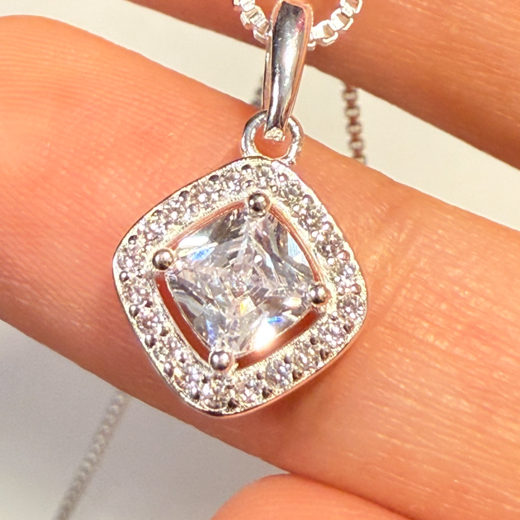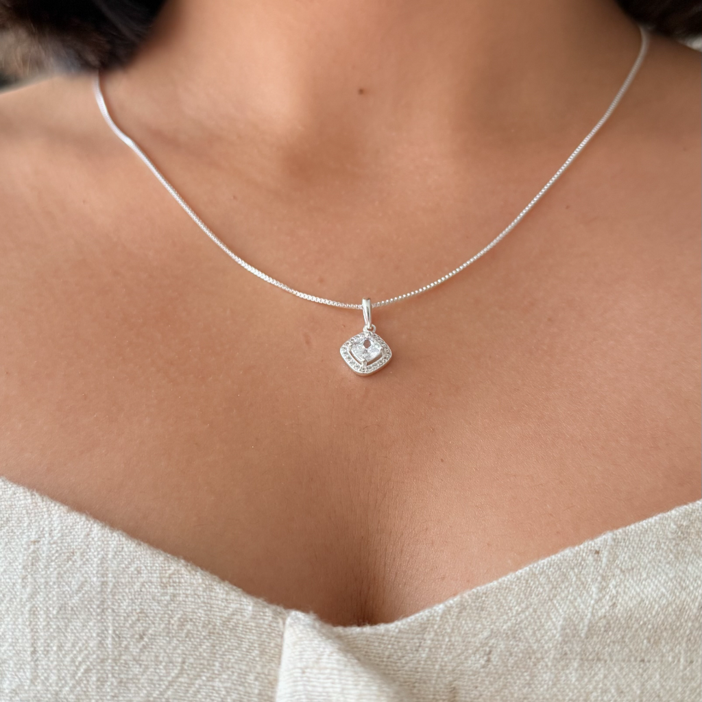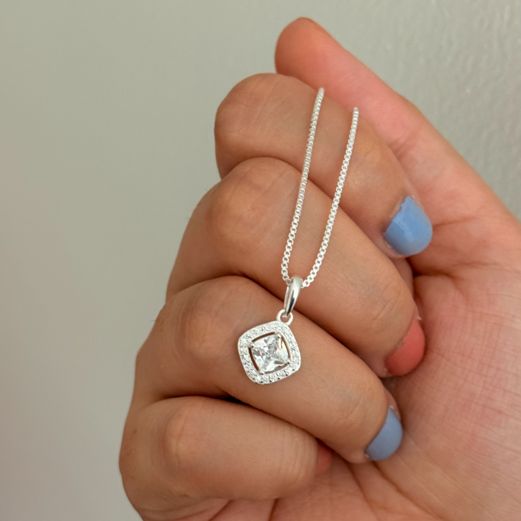 Features a brilliant, square-cut AAA+ cubic zircon pendant