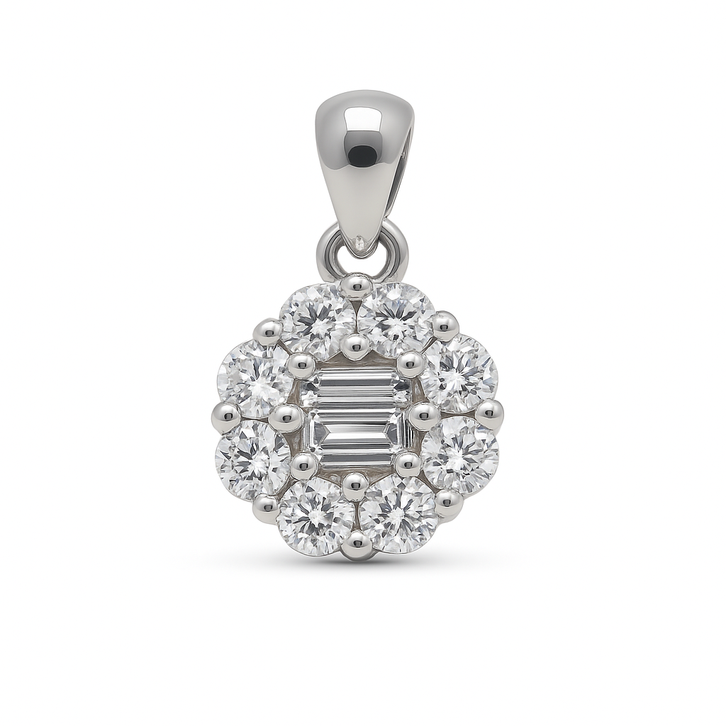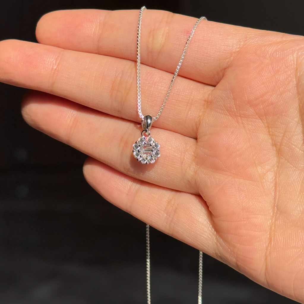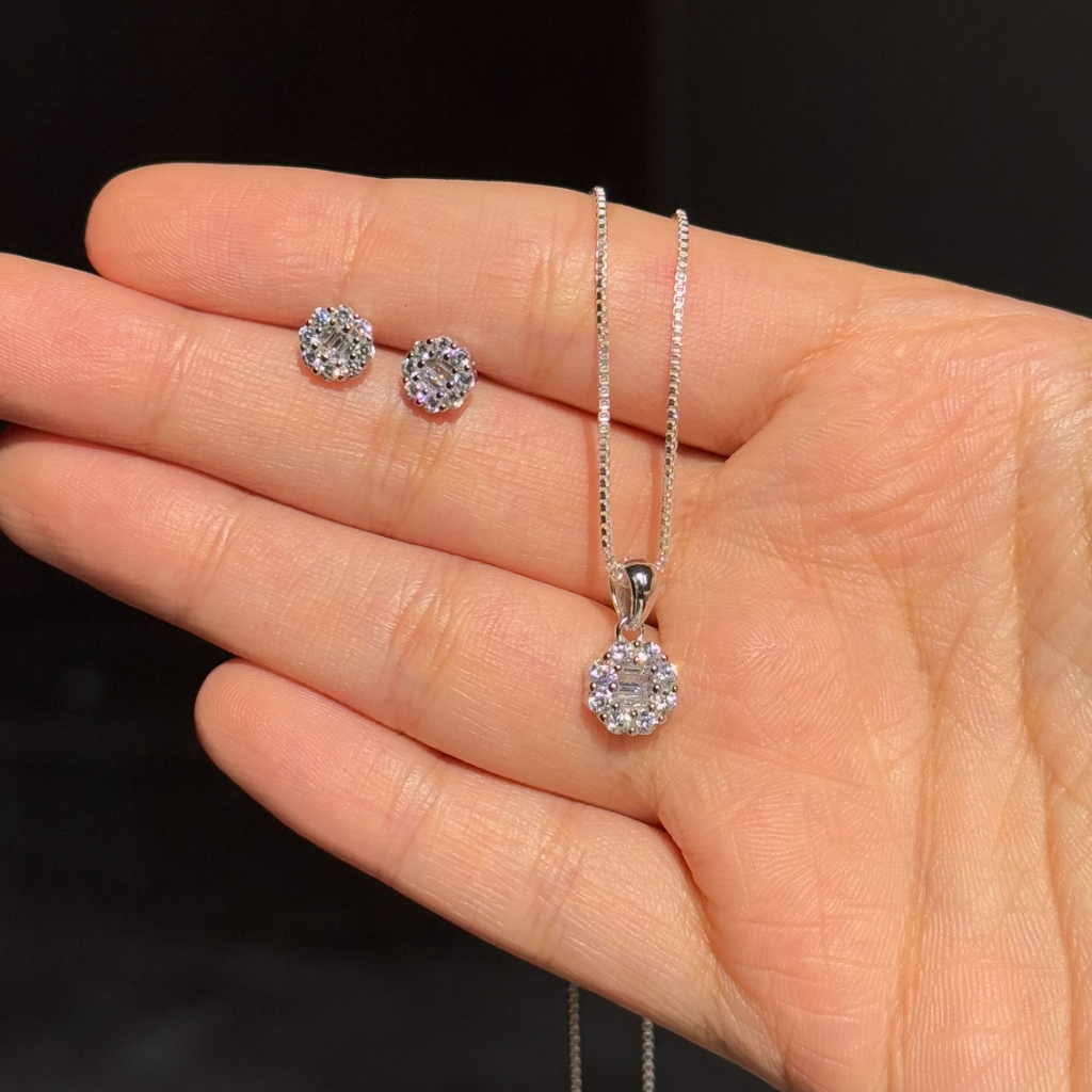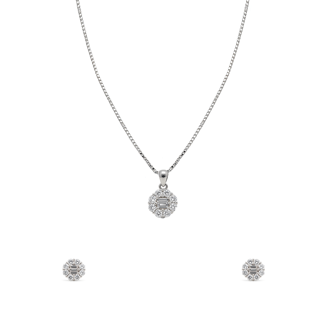 A sparkling pendant and earring set featuring high-quality AAA+ cubic zircon stones