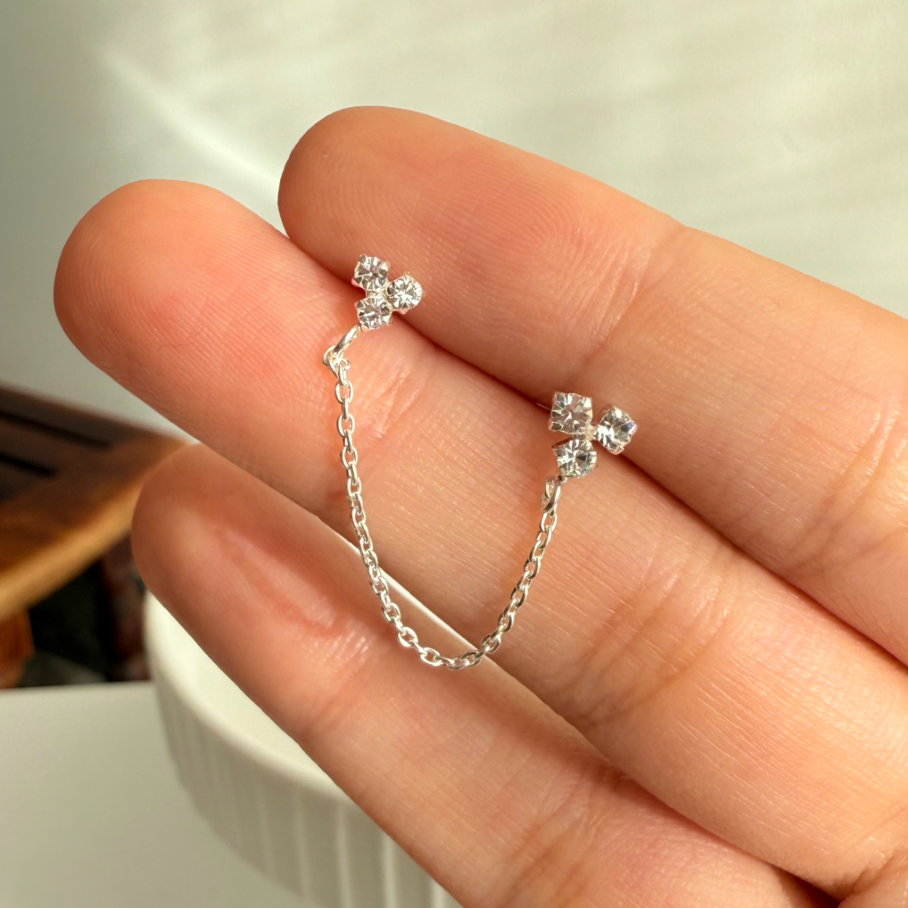 Adorn your ear with the precious beauty of the Gemma Twinnie earrings. Like a polished gem, this pair for double piercings features a clean and elegant design connecting two studs. It's a sophisticated and refined way to style a stacked piercing.