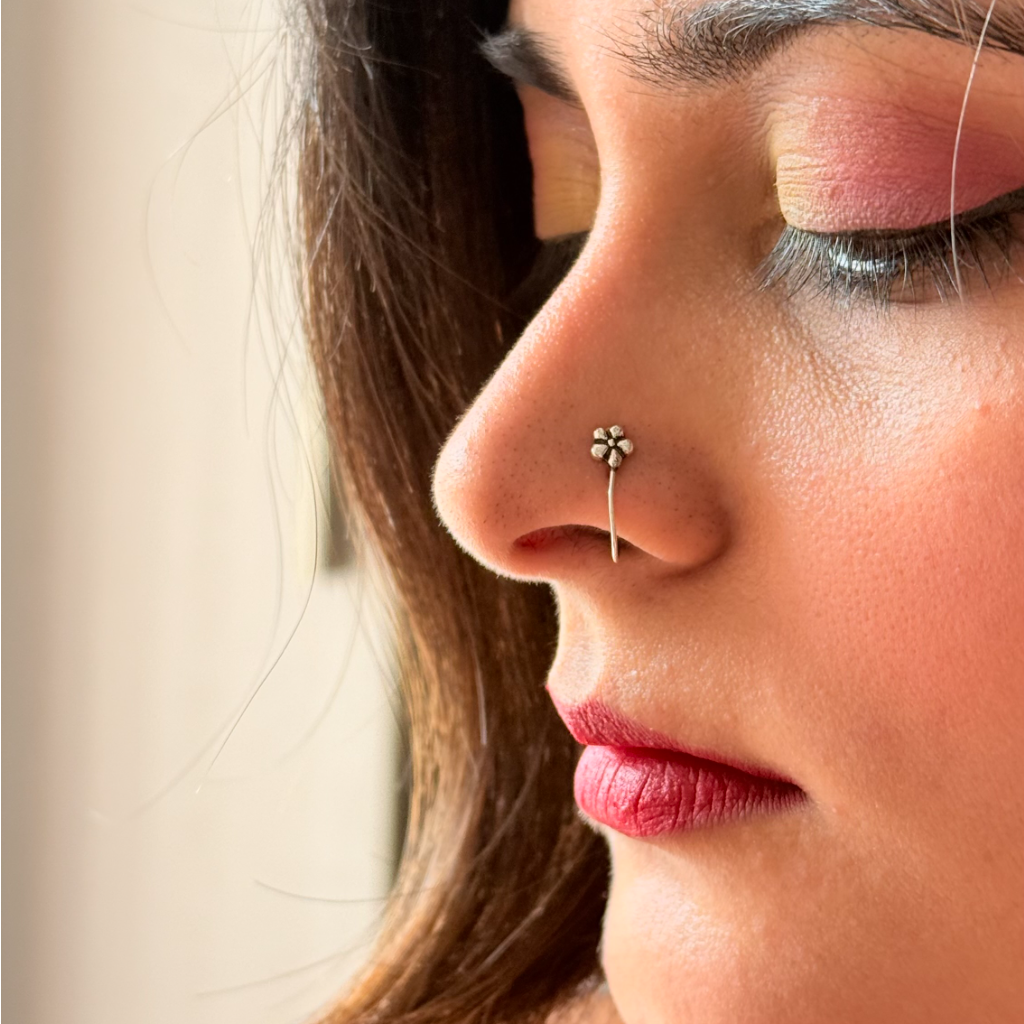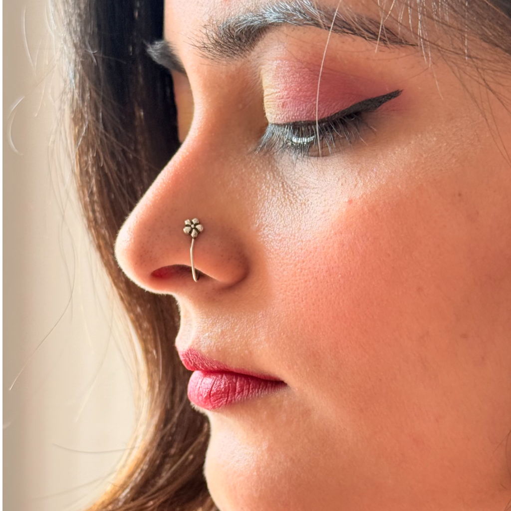 Embrace tropical beauty with this Hibiscus U-shaped Nose Pin. The easy-to-wear clip-on design showcases a beautifully detailed hibiscus flower, adding a touch of exotic, floral charm to your look without the need for a piercing.