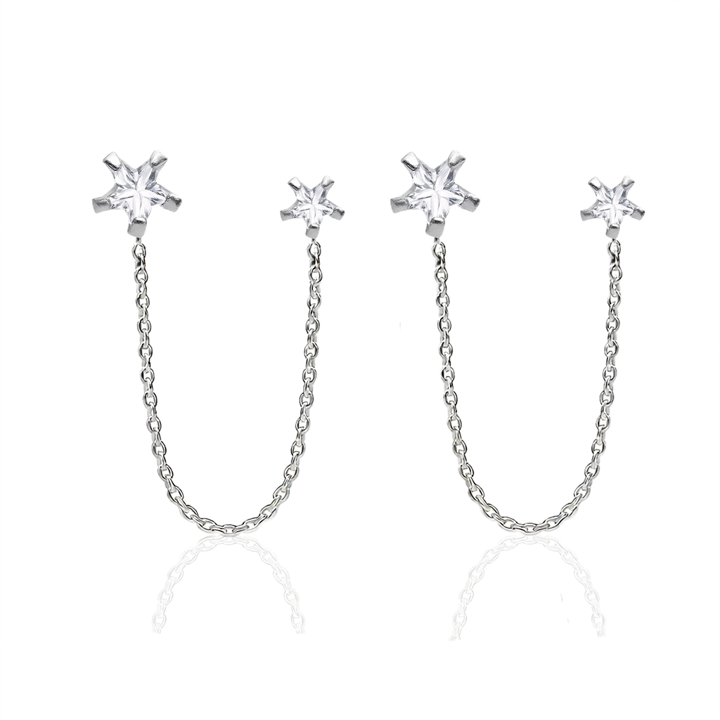 Shine like the brightest star in the sky with the Sirius Zircon Twinnie earrings. Designed for double piercings, this piece features a dazzling line or cluster of zircons connecting two studs. It’s a brilliant and glamorous way to create a spectacular ear constellation.