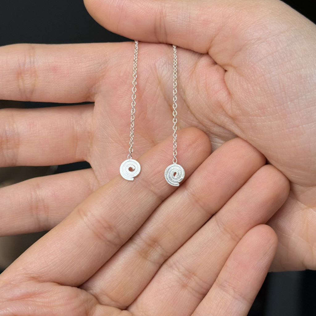 Add a touch of playful, modern art to your look with the squiggly shaped Threaders. This pair features a squiggle shape on a delicate thread-through chain. They are a unique and creative accessory for the modern minimalist.