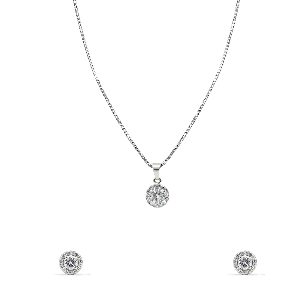 A dazzling pendant and earring set with a regal AAA+ cubic zircon arrangement