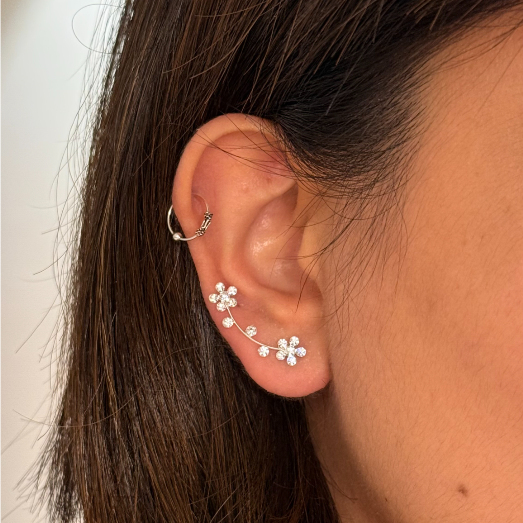 The Vishaka Sliders offer a branching, star-like beauty that climbs the ear. This pair is inspired by the celestial, featuring a design that spreads gracefully along the earlobe. It's an elegant and eye-catching way to wear a constellation of sparkle.